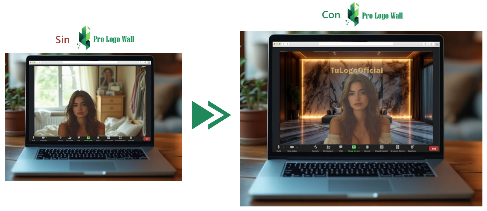 Con Pro Logo Wall, ahora todas tus videoconferencias tendrán un aspecto profesional, sin importar dónde estés, proyectando una imagen seria y dedicada en todo momento.